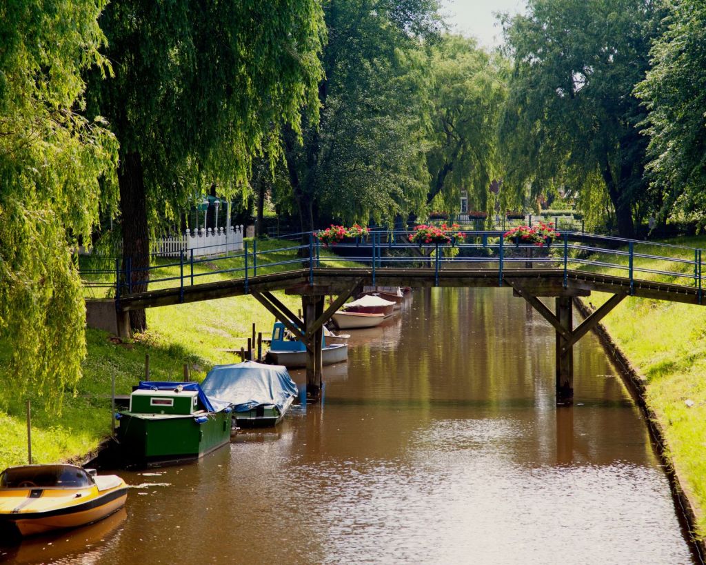 Zuletzt geht es nach Friedrichstadt. Einer kleinen Stadt in Schleswig-Holstein, die oft als Mischung aus Venedig und Amsterdam beschrieben wird – wir finden: völlig zu Recht. Die von niederländischen Siedler:innen gegründete Stadt ist von einem ausgeklügelten System aus Grachten durchzogen, das an die Wasserstädte Europas erinnert. Weiße Brücken, historische Giebelhäuser und ein weit verzweigtes Kanalsystem prägen das Bild und laden zum gemütlichen Bummel oder zur Bootstour ein. Besonders im Sommer, wenn Cafés und Restaurants ihre Tische ans Wasser stellen, kommt echtes südländisches Urlaubsfeeling auf.