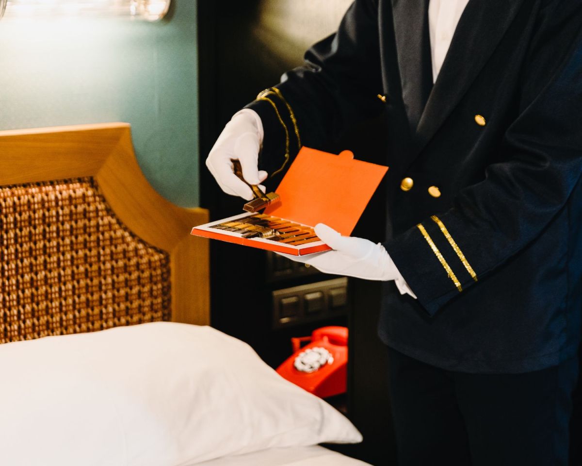 Die Idee für dieses besondere Konzept stammt von der Inhaberfamilie, die das Hotel bereits in vierter Generation führt. Sie hat das traditionsreiche Haus mit viel Liebe zum Detail in ein Refugium für Schokoladenfreunde verwandelt. Schon in der Lobby duftet es nach Kakao und zartschmelzender Schokolade. Im gesamten Haus finden sich dekorative Elemente, die das Thema aufgreifen – von Pralinen-Motiven an den Wänden bis hin zu kleinen Schokoladengaben auf dem Kopfkissen.